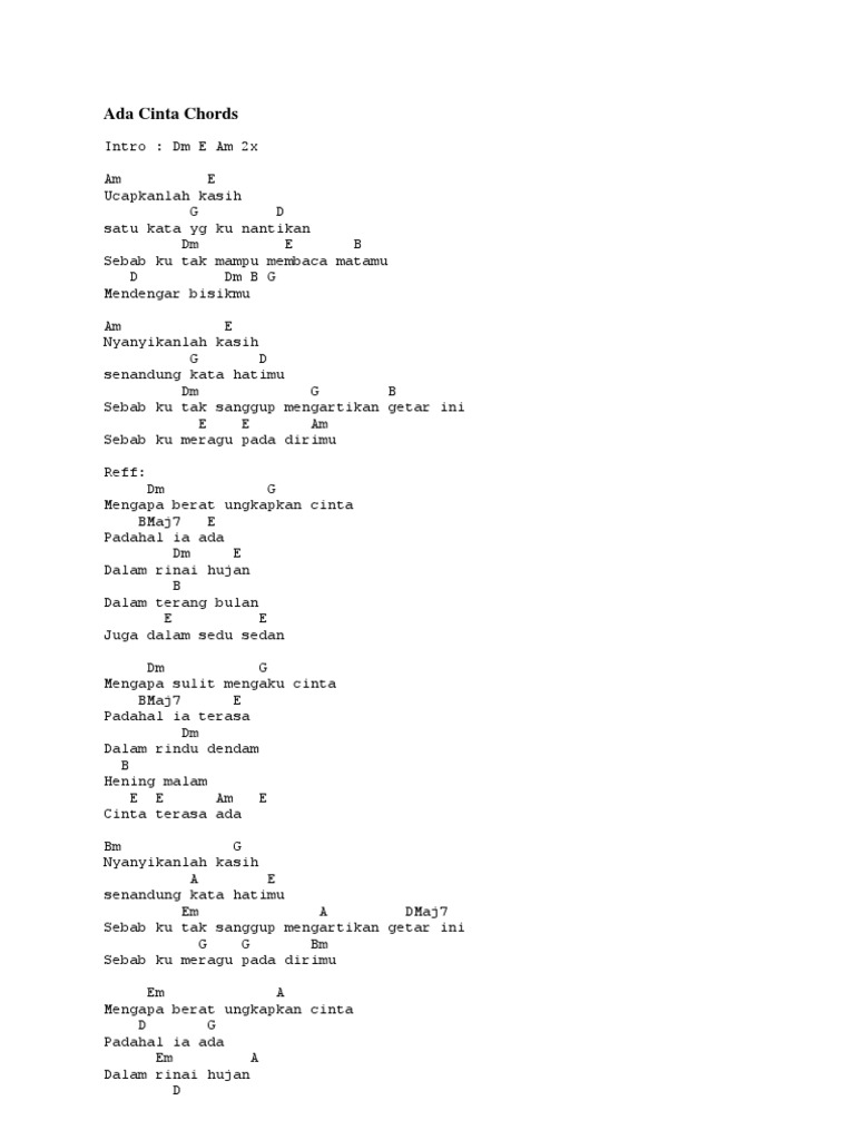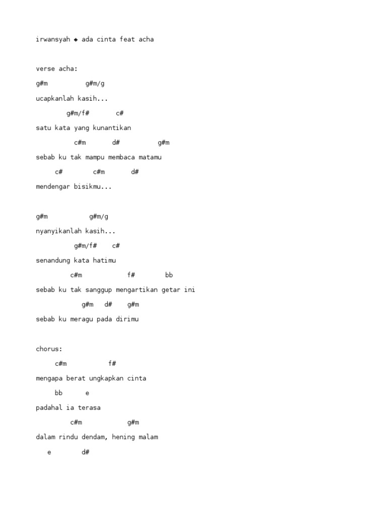 Not Angka Lagu Acha feat Irwansyah - Ada Cinta - Tempat Not Angka …