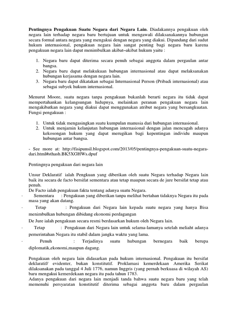 Pentingnya Pengakuan Sebagai Negara Berdaulat