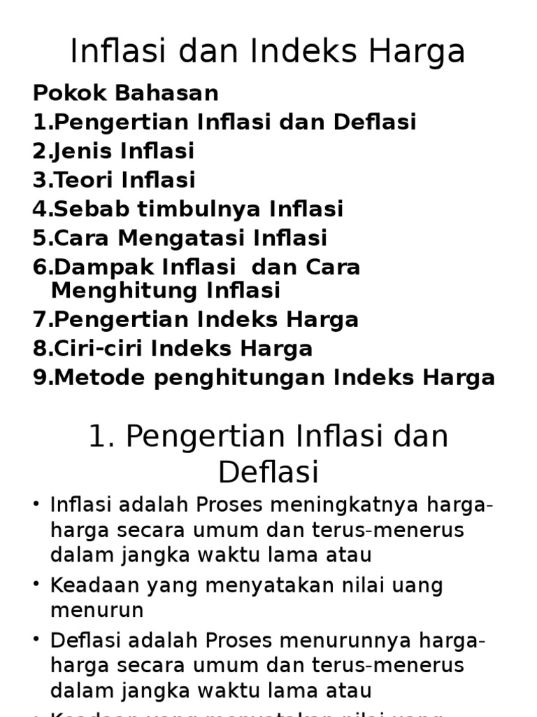 inflasi dan indeks harga.pptx - Inflasi dan Indeks Harga Pokok Bahasan 1 Pengertian Inflasi dan Deflasi 2 Jenis Inflasi 3 Teori Inflasi 4 Sebab | Course Hero