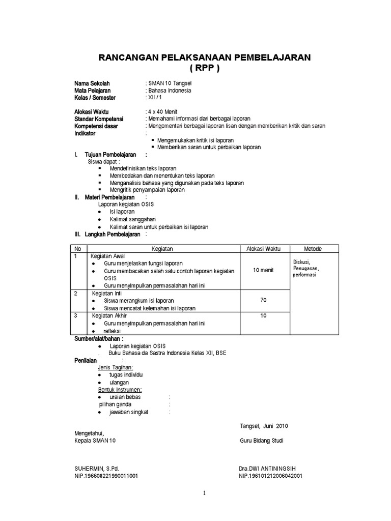 RPP Bahasa Indonesia Kelas XII RASNI - [DOC Document]