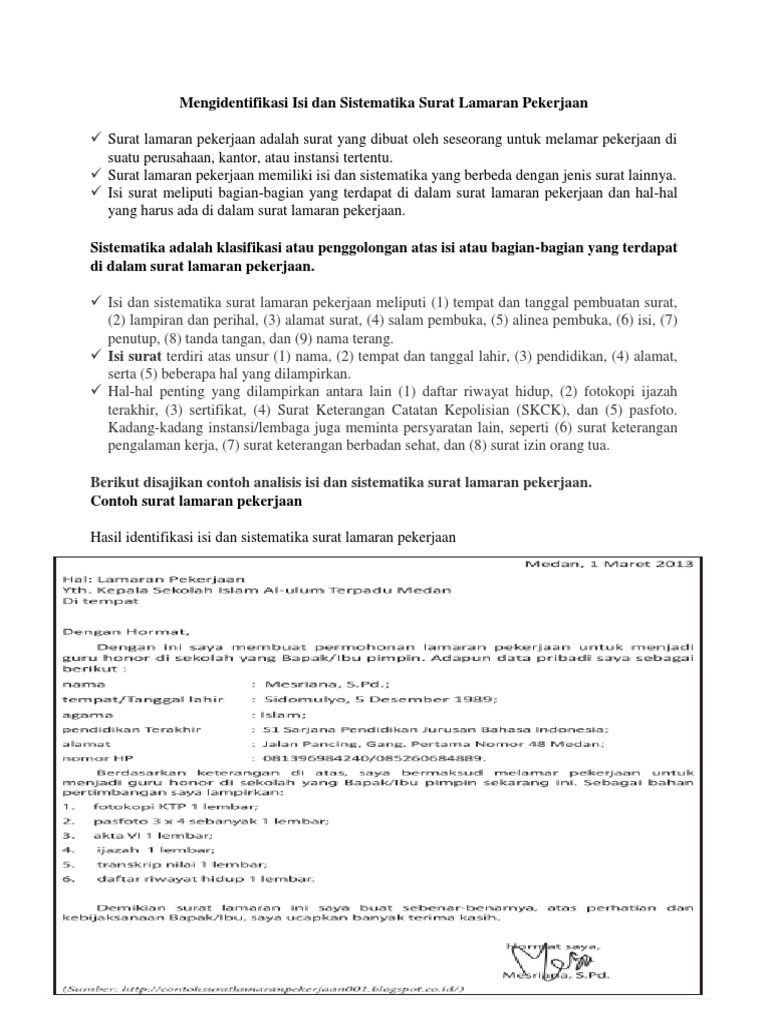 Surat Lamaran Pekerjaan: Isi, Unsur Kebahasaan, dan Sistematika …