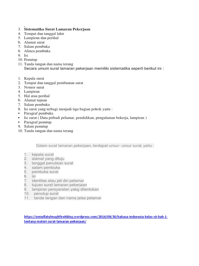 MENYIMPULKAN ISI DAN SISTEMATIKA SURAT LAMARAN PEKERJAAN ~ ZUHRI …
