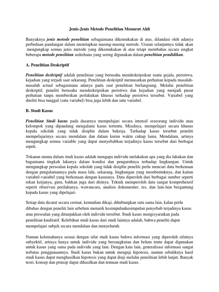 Jenis Metode Penelitian Menurut Para Ahli