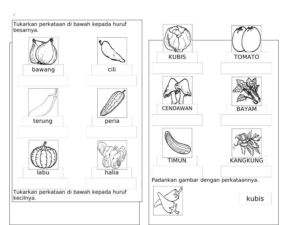 Mari Mewarna Gambar Pelbagai Sayur-Sayuran - Gambar Mewarna