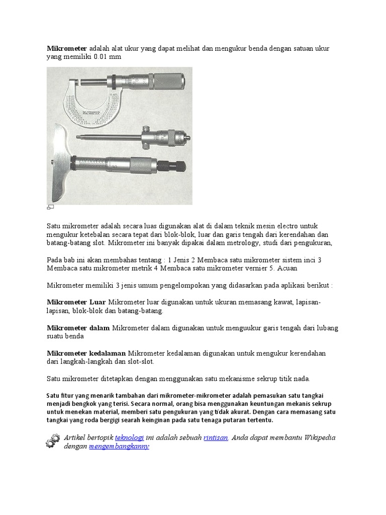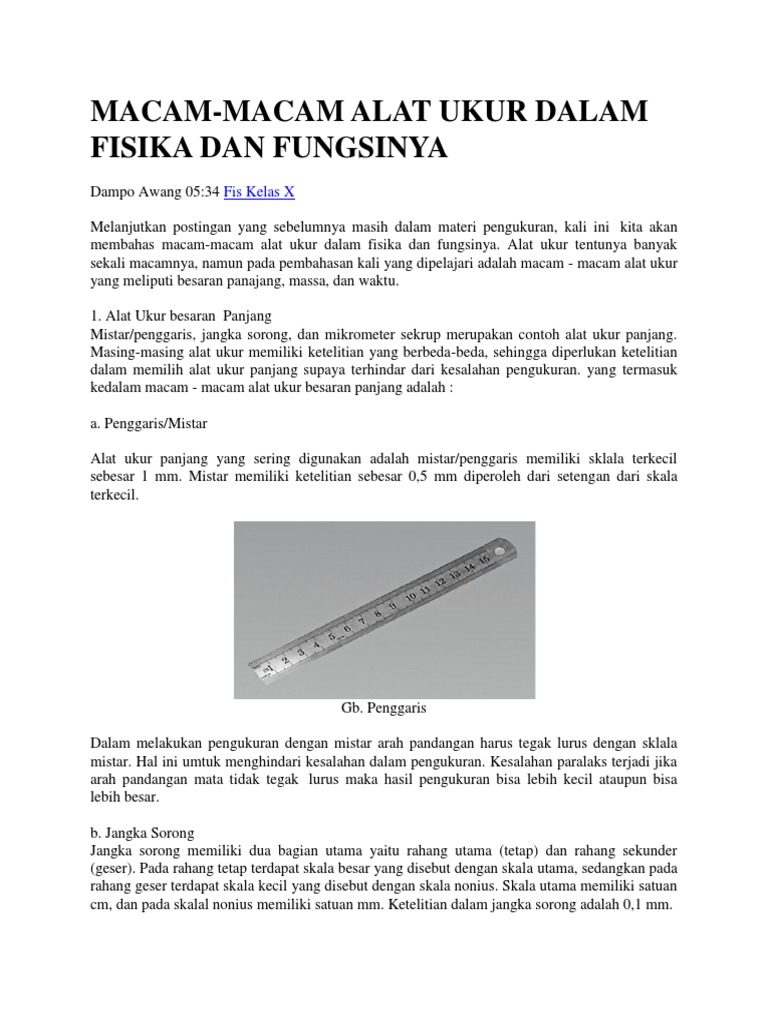DOC) Alat Ukur Panjang: Mistar, Jangka Sorong, dan Mikrometer | Roro Kemuningsari - Academia.edu