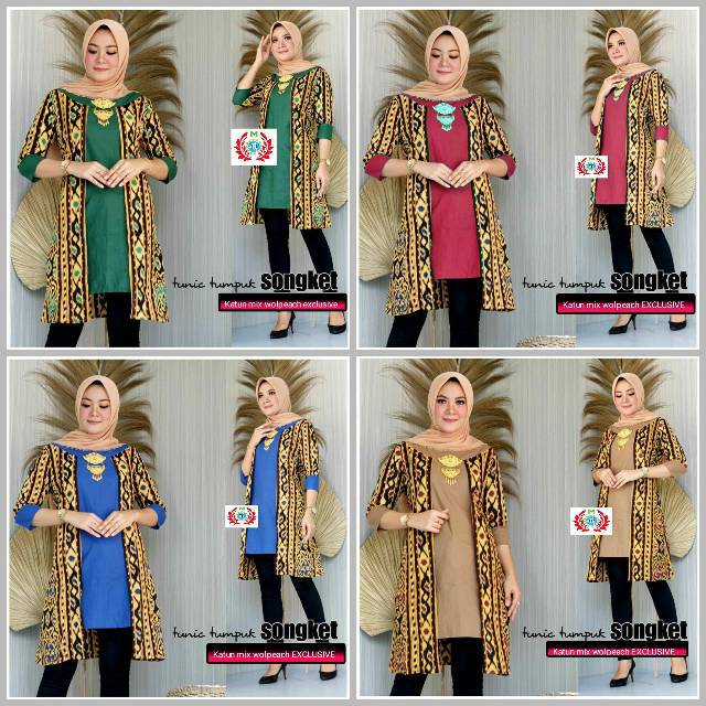 Atasan wanita dewasa baju tunik batik tumpuk songket anggun dan …