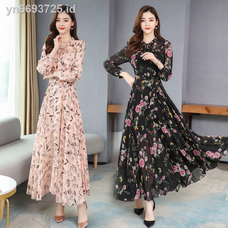 ▧ ♧ 2020 Gaun Maxi Wanita Bahan Sifon Tipis Motif Bunga untuk Musim Semi | Shopee Indonesia