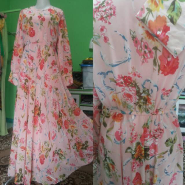 Model Baju Gamis Bahan Sifon Motif Bunga