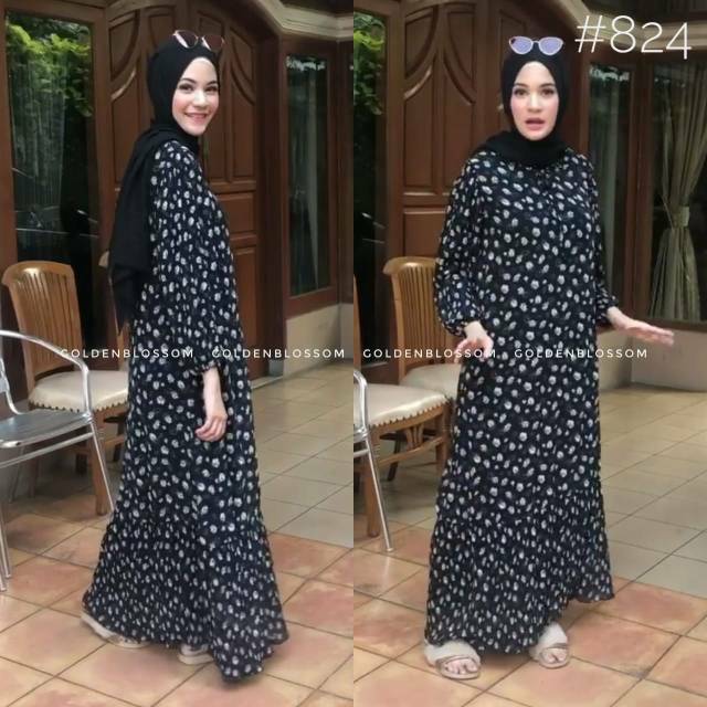 NENINA Gamis sifon premium plisket import motif bunga Kode: #824 | Shopee Indonesia