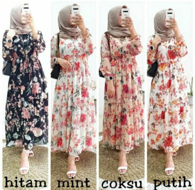 29 Model Baju Gamis Sifon Bunga - Model Baju | Gamis | Celana | Sepatu