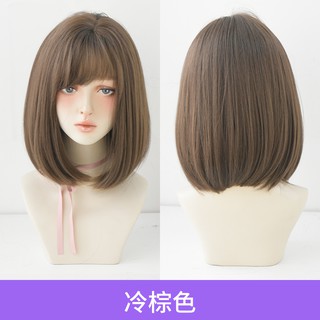 Wig wanita rambut pendek sebahu, rambut sedang, wajah bulat …