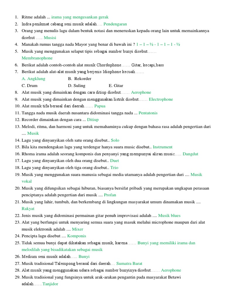 Soal Seni Musik Pilihan Ganda Beserta Jawaban - [DOCX Document]