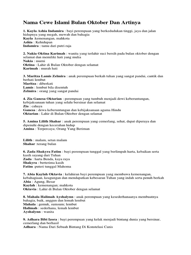 RANGKAIAN NAMA BAYI PEREMPUAN ISLAMI LAHIR DIBULAN OKTOBER BESERTA …