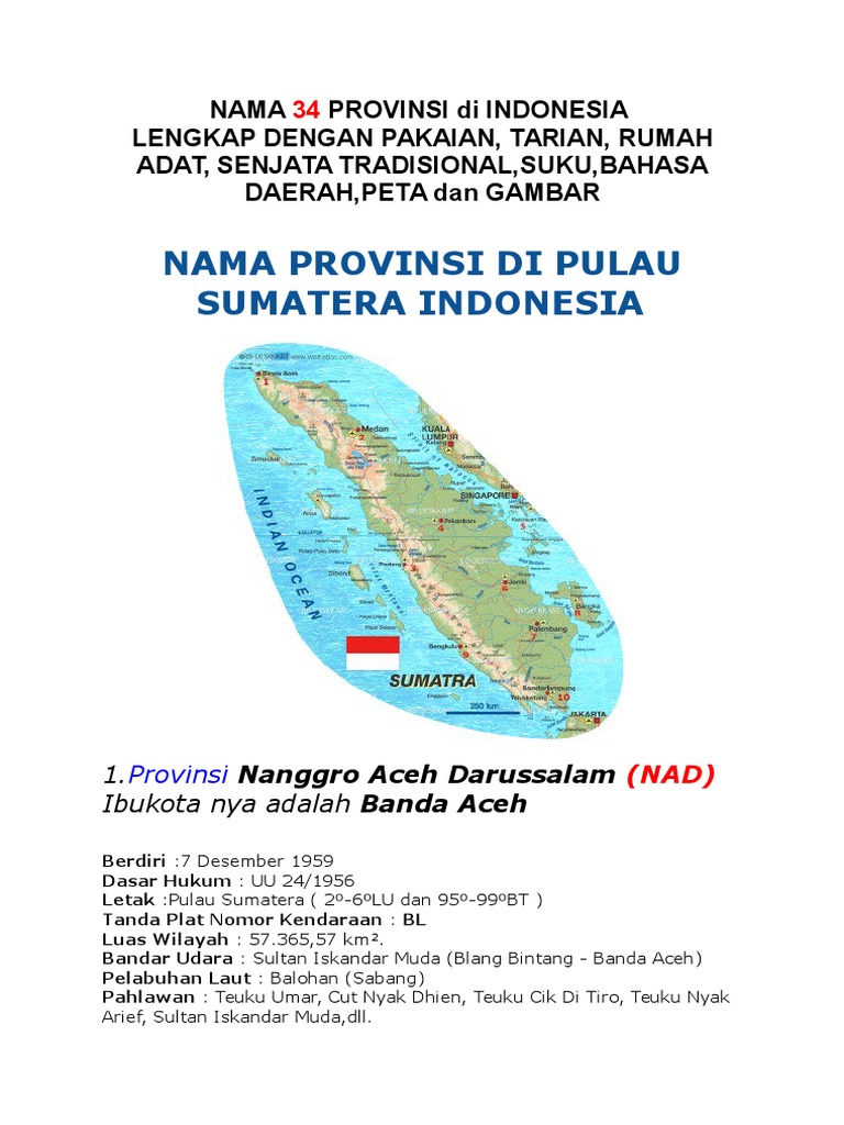 √ 10 Nama Provinsi di SUMATERA: Ibukota, Bahasa, Suku, Pahlawan …