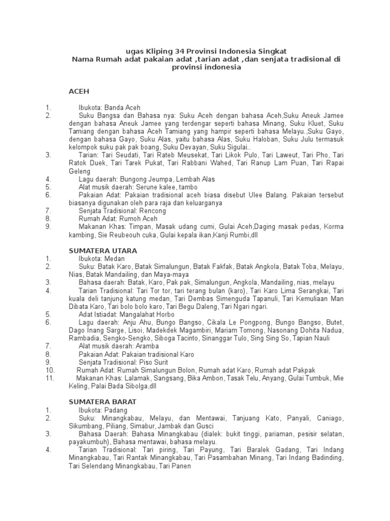 Tugas Kliping 34 Provinsi Indonesia Singkat