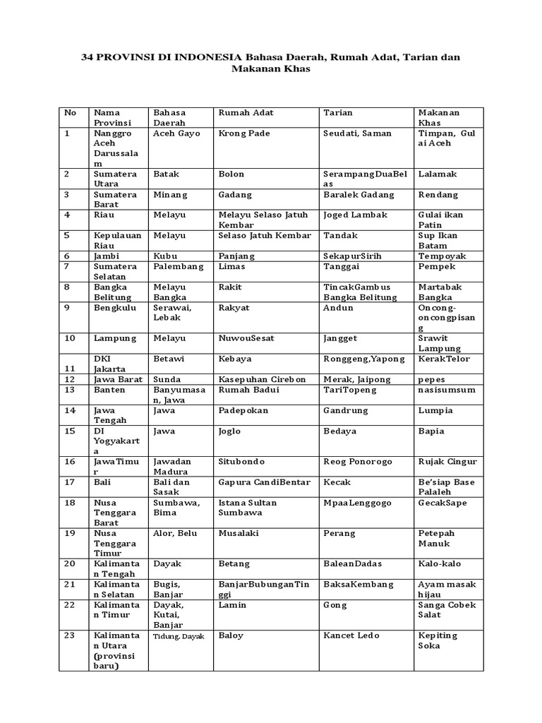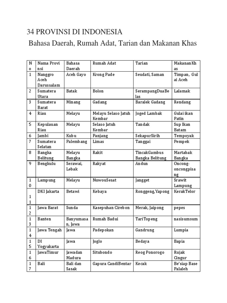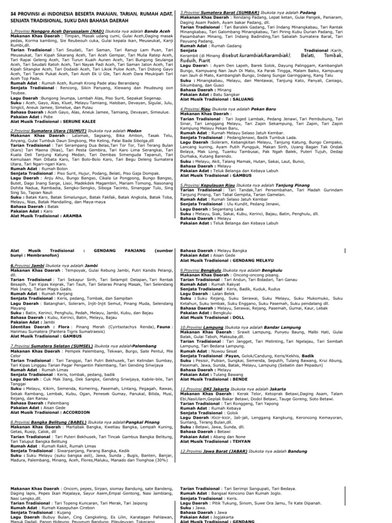DOC) 34 provinsi di indonesia lengkap, rumah adat, pakaian adat …
