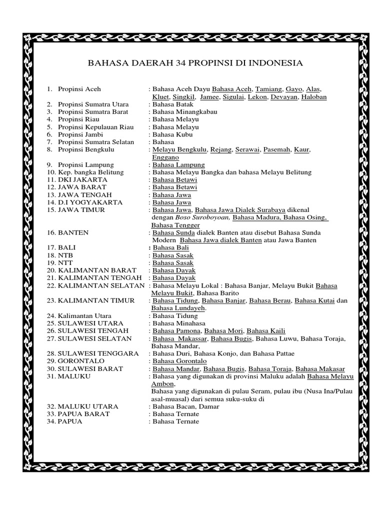 34 Provinsi Di Indonesia Bahasa Daerah