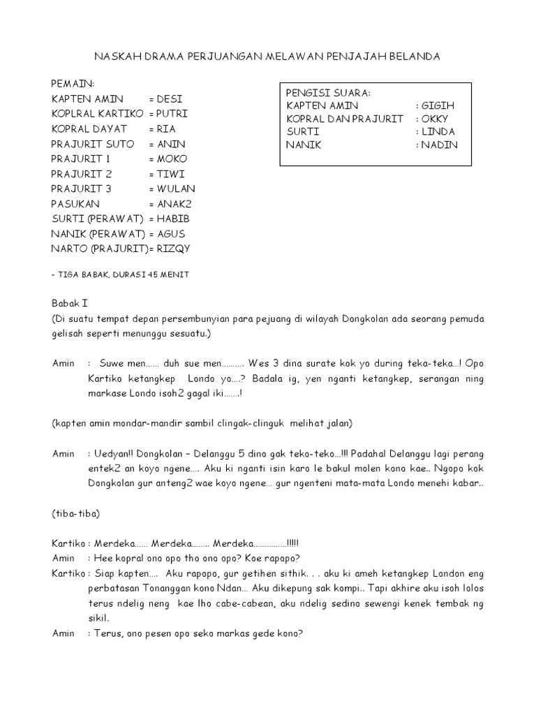 DOC) Contoh naskah drama proklamasi untuk 10 orang | Ayu Mentari …