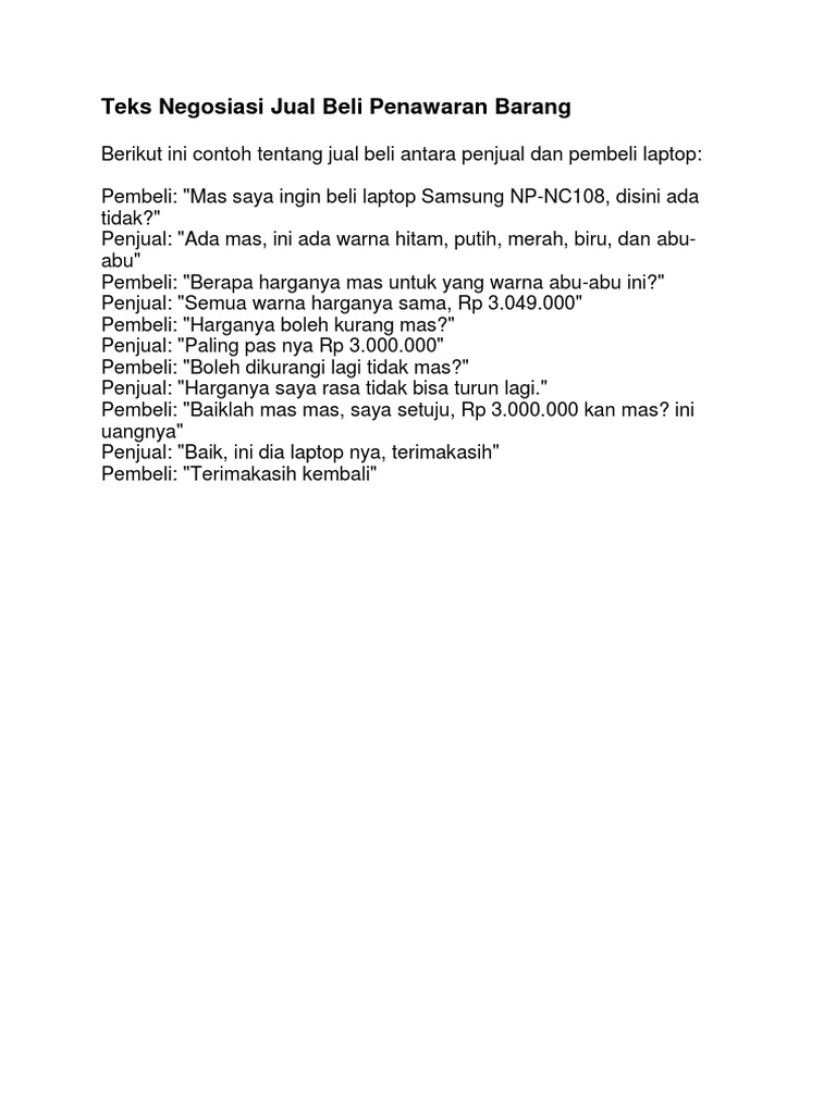 Contoh Teks Negosiasi Jual Beli 6 Orang - Berbagai Teks Penting