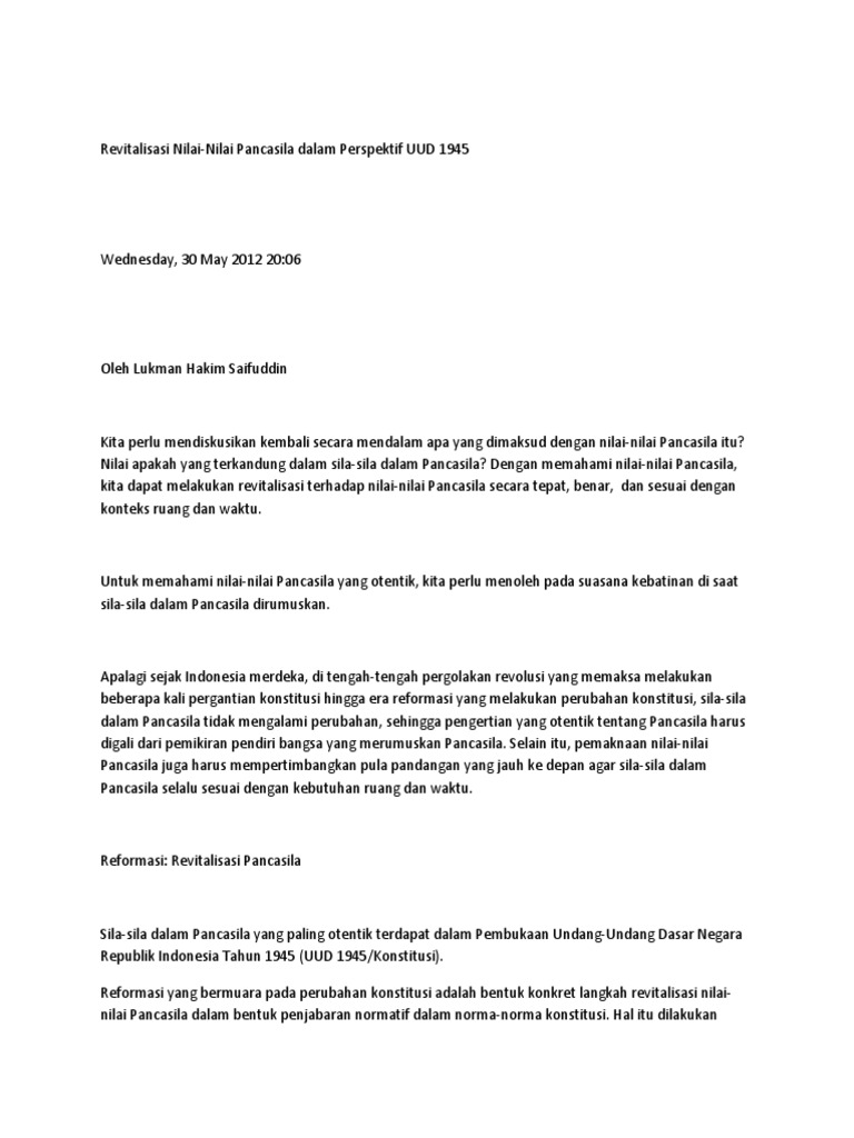 Revitalisasi Nilai Pancasila Dalam Perspektif UUD 1945
