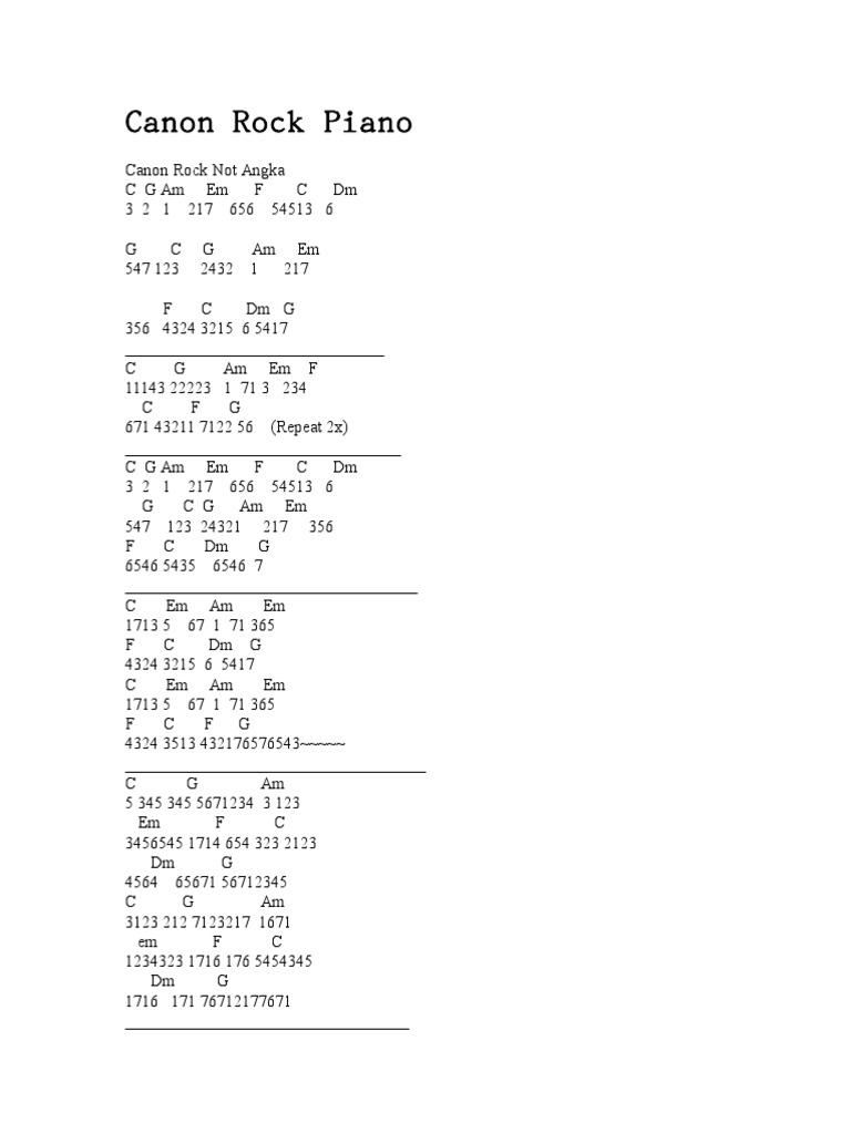 Not Angka Piano Canon Rock - Koleksi Not Angka