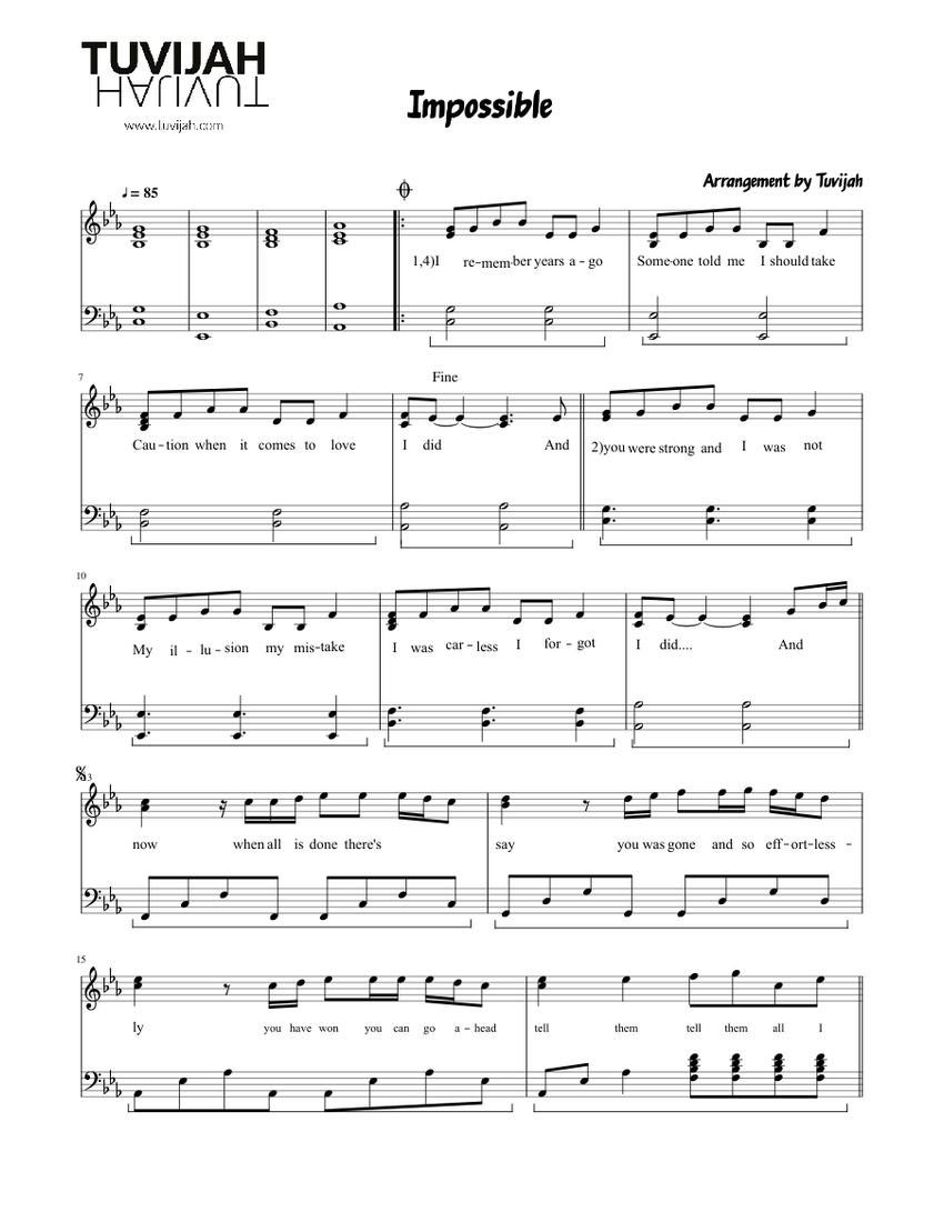 Impossible - easy Arrangement (Arrangement) Sheet music for Piano …