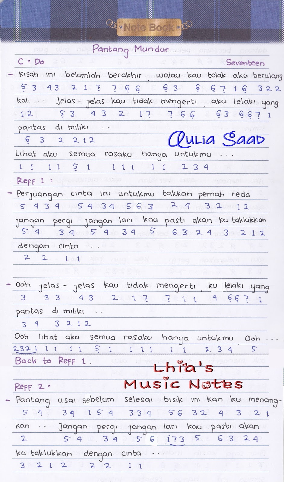 Not Angka Pianika Lagu Seventeen Pantang Mundur