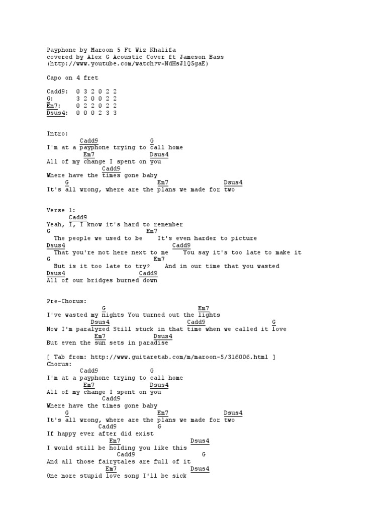 Chord Maroon 5 Payphone - version 8 - Chord Gitar Indonesia …