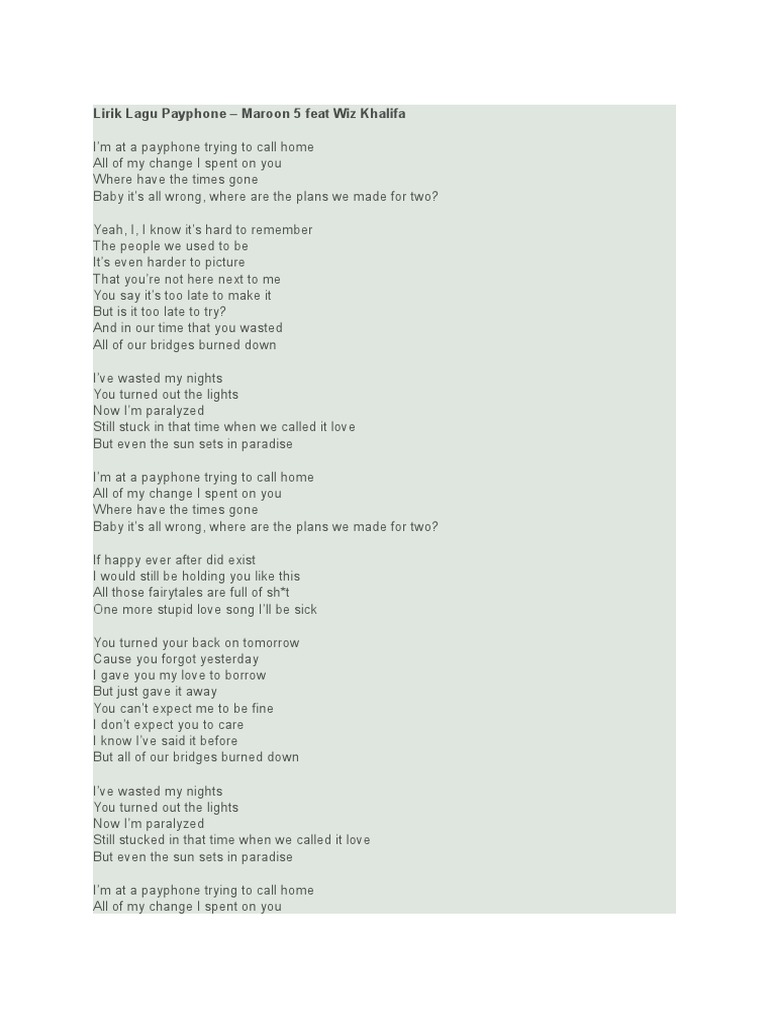 Lirik Lagu Payphone Dan Terjemahannya [6nq89ze17qnw]