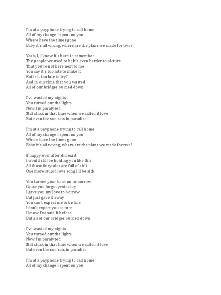 Payphone Lyrics Gaps | Musical Compositions | Pop Songs