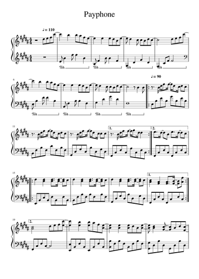 Not Angka Lagu Maroon 5 Payphone - Koleksi Not Angka