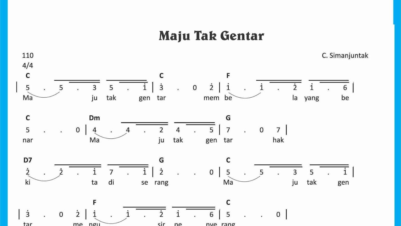 Not Angka Lagu Maju Tak Gentar Ciptaan C. Simanjuntak