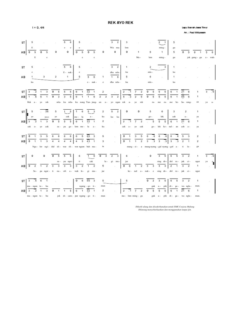 Not Angka Lagu Rek Ayo Rek - SEKITAR MUSIK