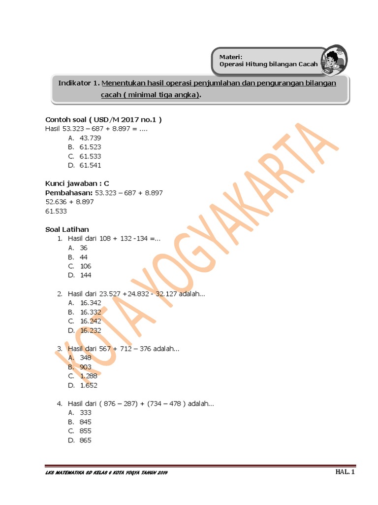 Latihan Soal Operasi Hitung Bilangan Bulat Matematika Kelas 6 …