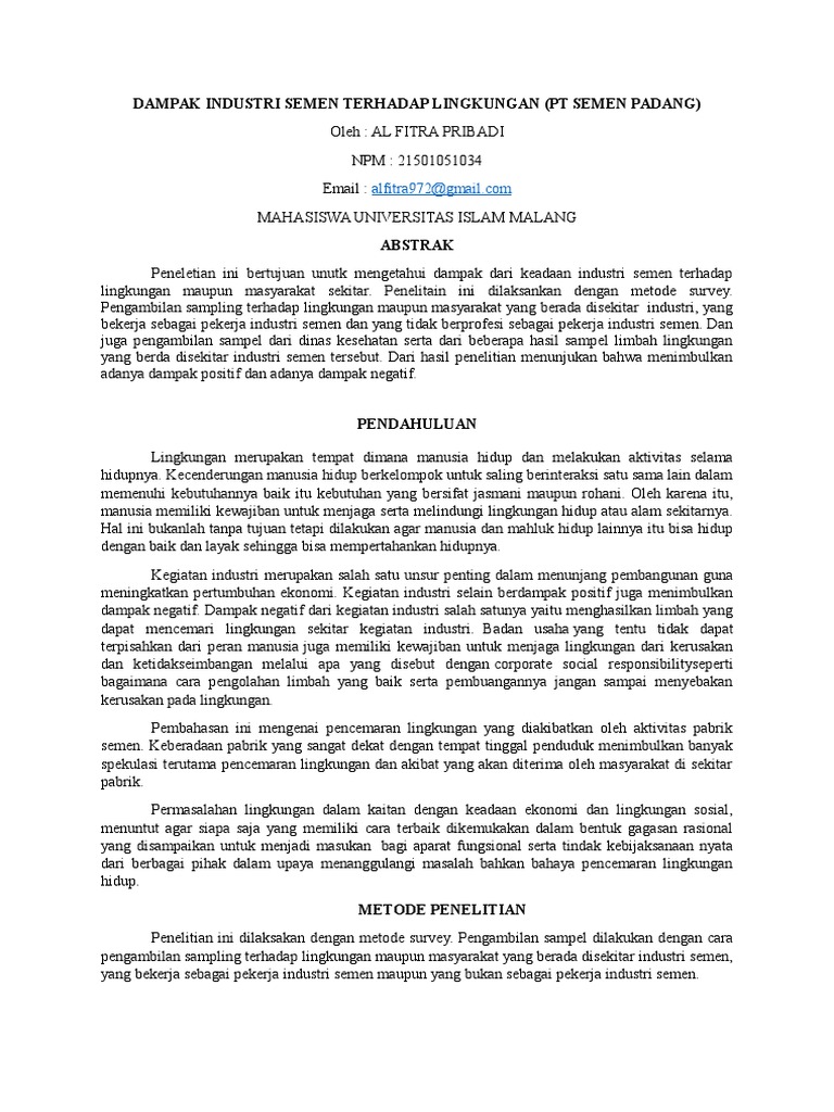 DAMPAK NEGATIF PENCEMARAN LINGKUNGAN DARI PABRIK SEMEN | Rendymalik29