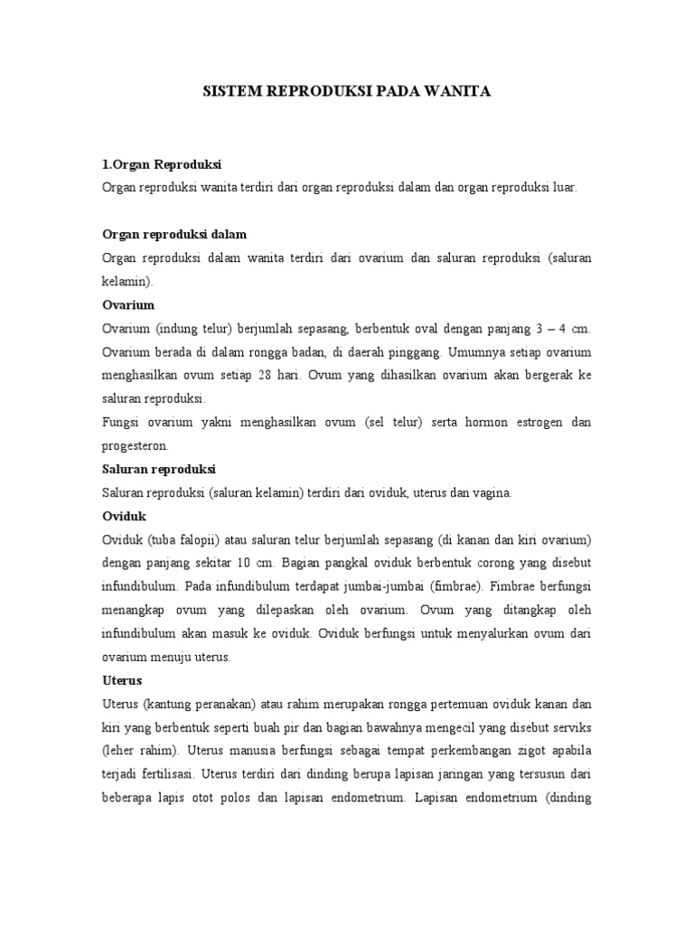 Sistem reproduksi wanita meliputi organ reproduksi, oogenesis