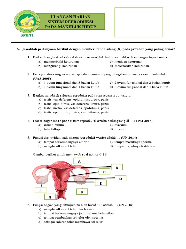 Ulangan Harian Sistem Reproduksi Pada Makhluk Hidup