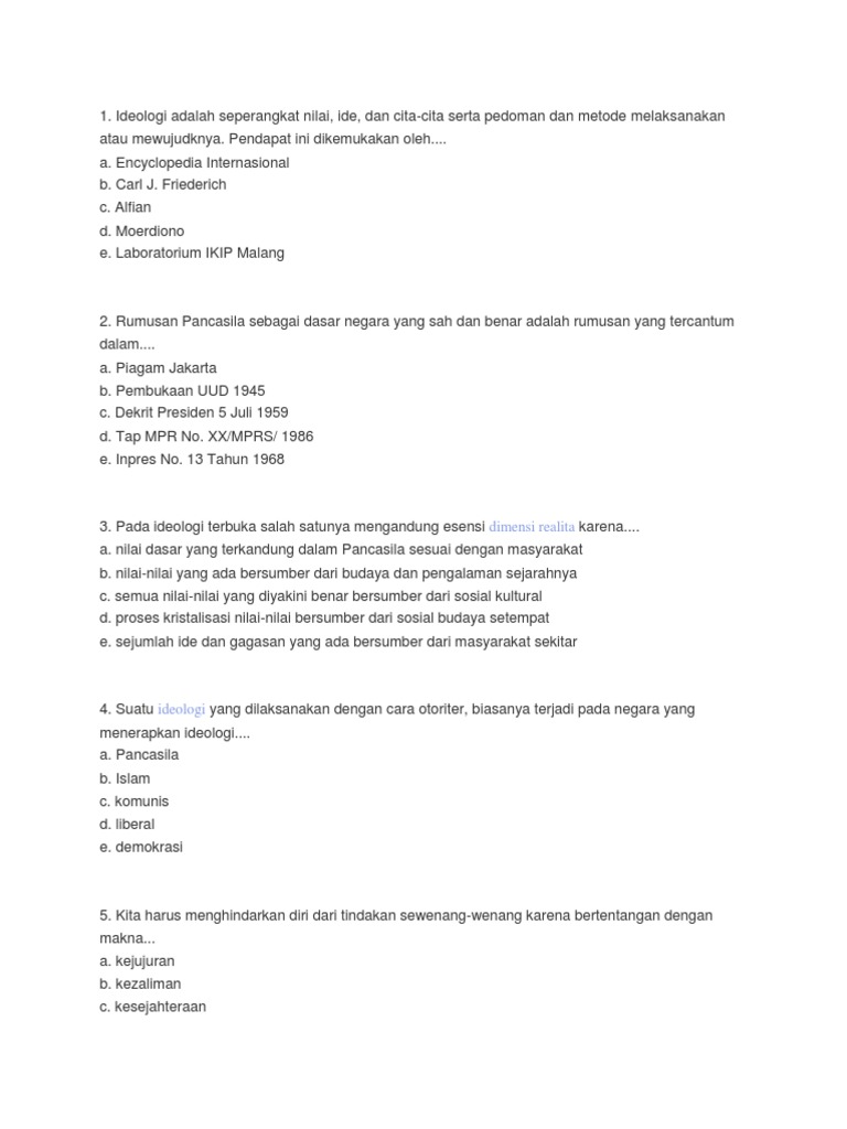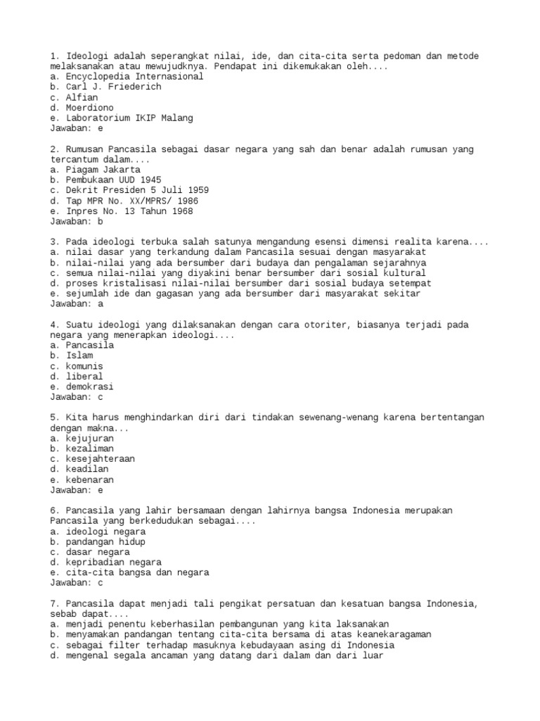 Contoh Latihan Soal Pancasila - TWK CPNS 2019 (Update) - ABI …