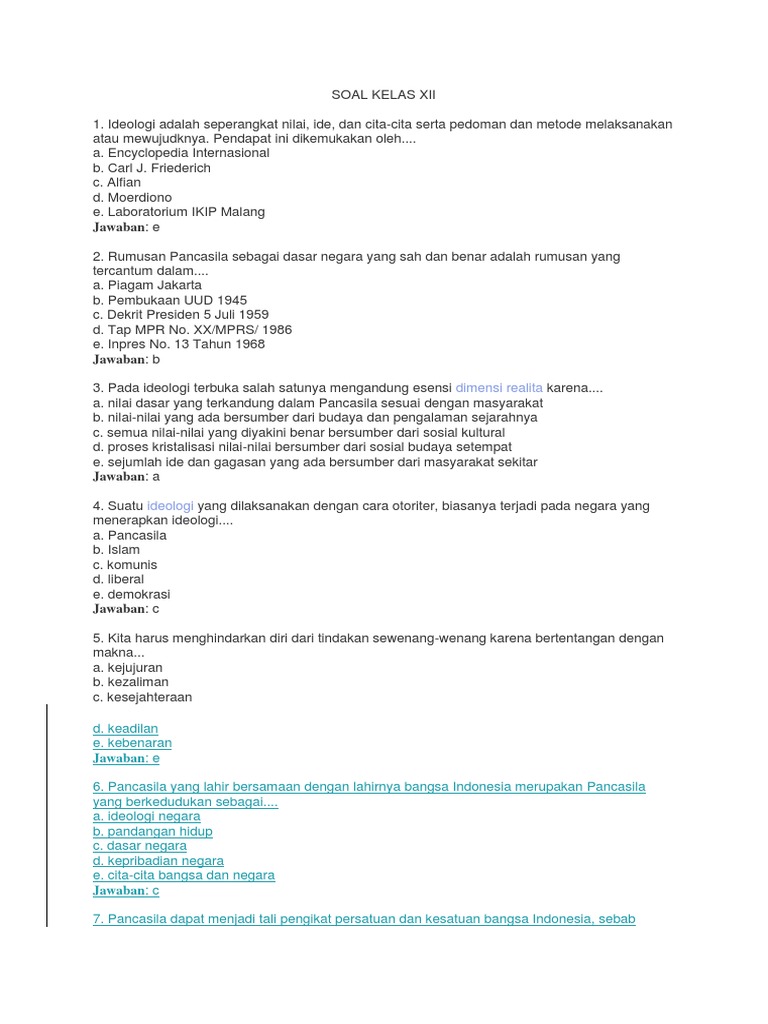 50 SOAL PPKN KELAS 12 SEMESTER 1