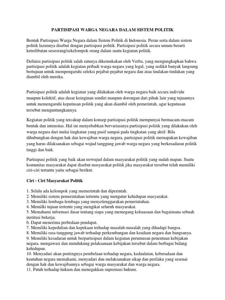 Partisipasi Warga Negara dalam Sistem Politik di Indonesia ⋆ DOC …