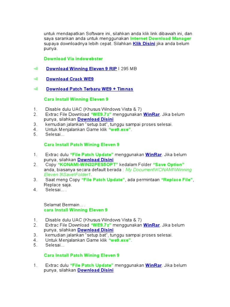 Download Game Winning Eleven 9 Pc Full Version Gratis