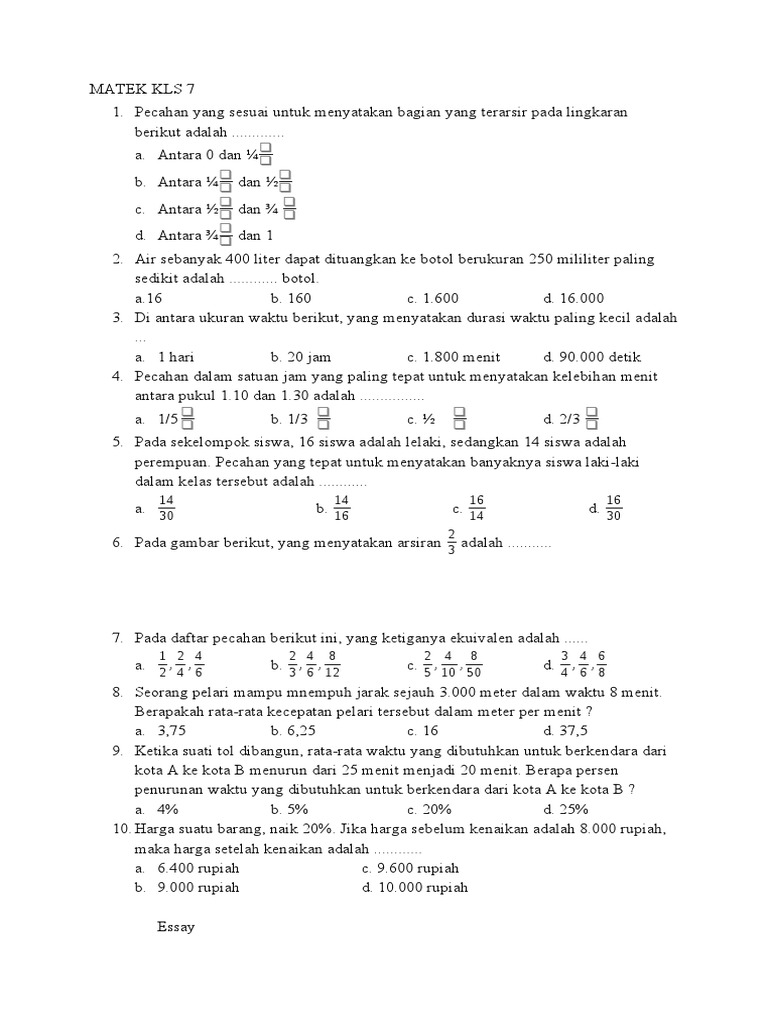 Soal Matematika Penilaian Akhir Semseter Kelas VII/1