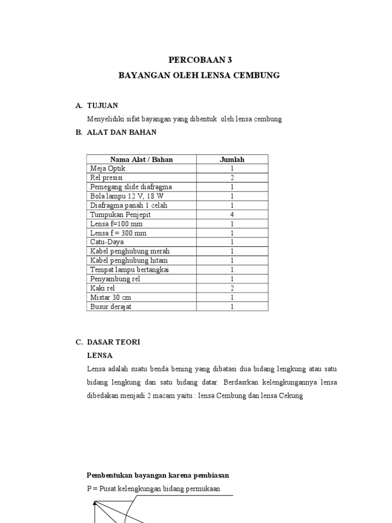 Laporan Praktikum Pembentukan Bayangan Pada Lensa Cembung - [PDF …
