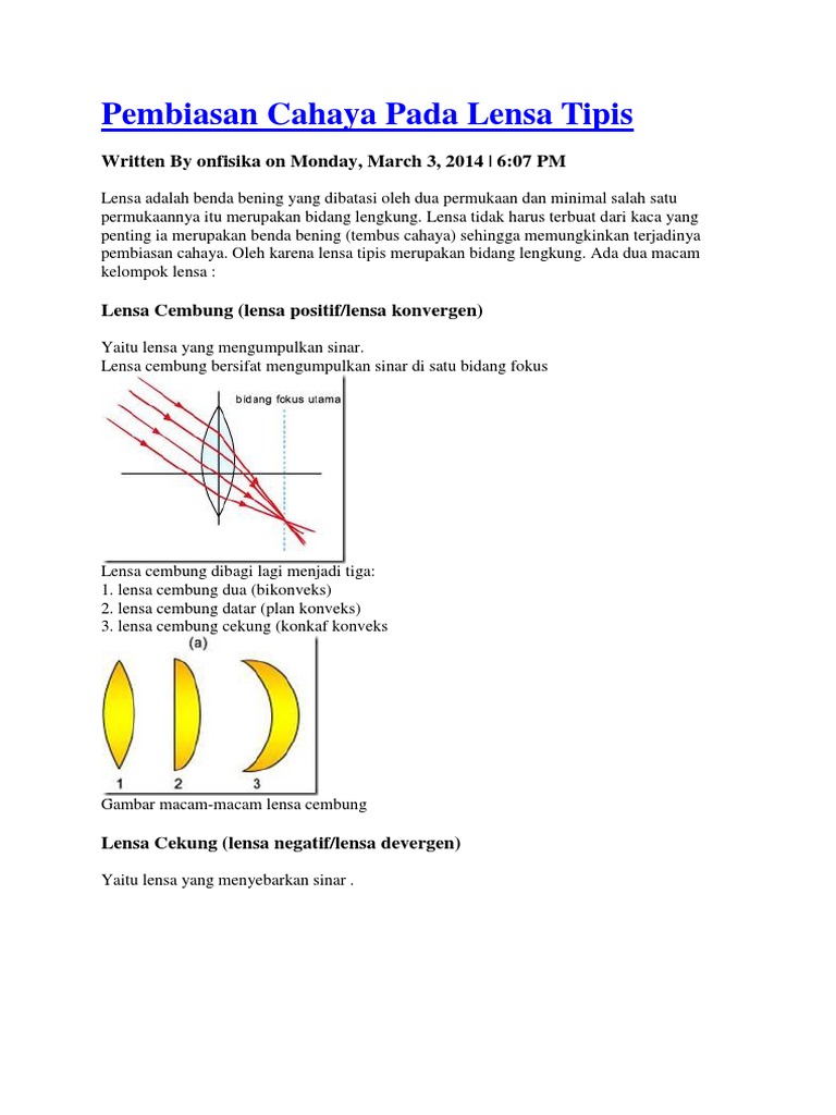 Contoh Soal Lensa Cembung dan Cekung Serta Pembahasannya | Matra …
