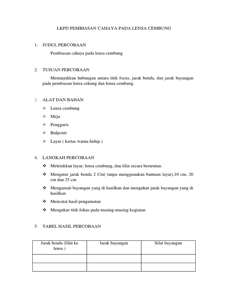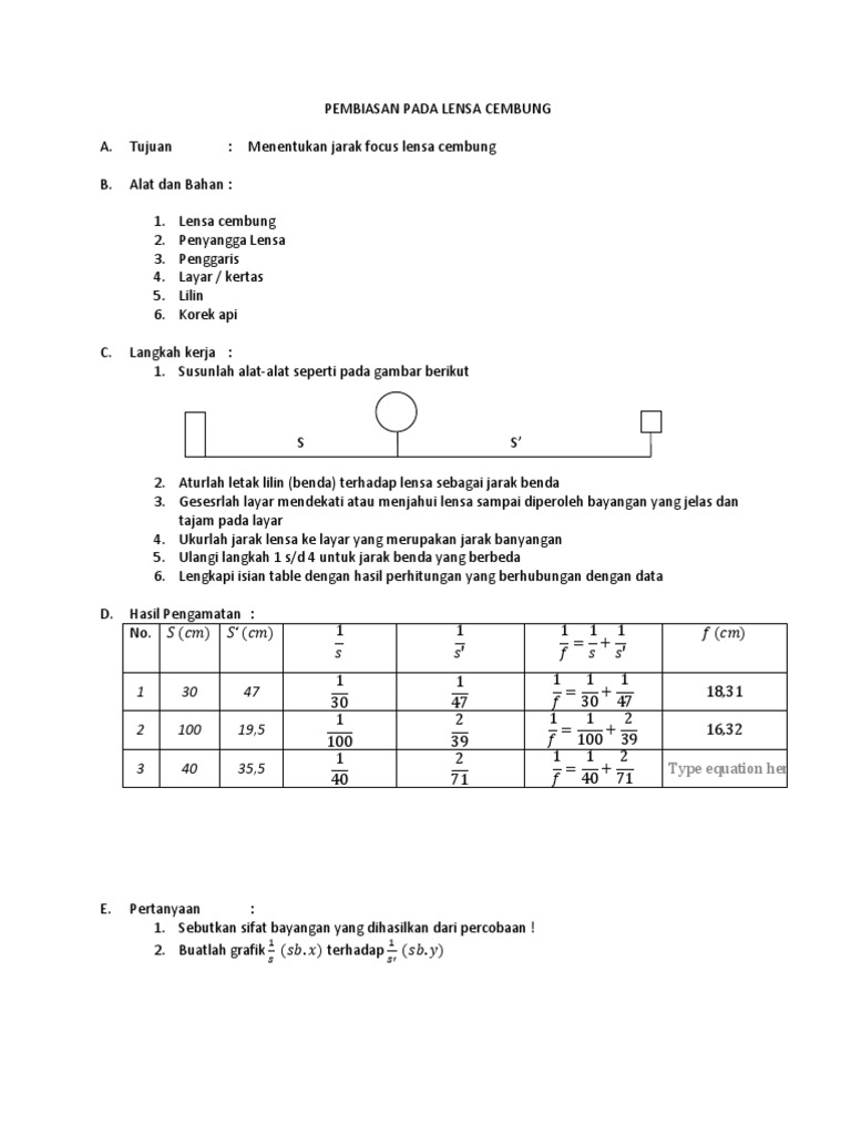 DOC) percobaan 5 LENSA CEKUNG DAN LENSA CEMBUNG | Sudirman Bajau …