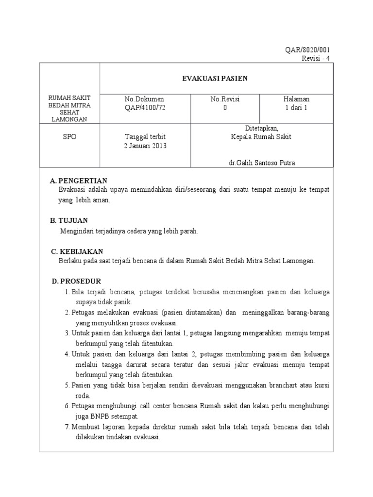Sop Evakuasi Pasien [1430p3yg1j4j]