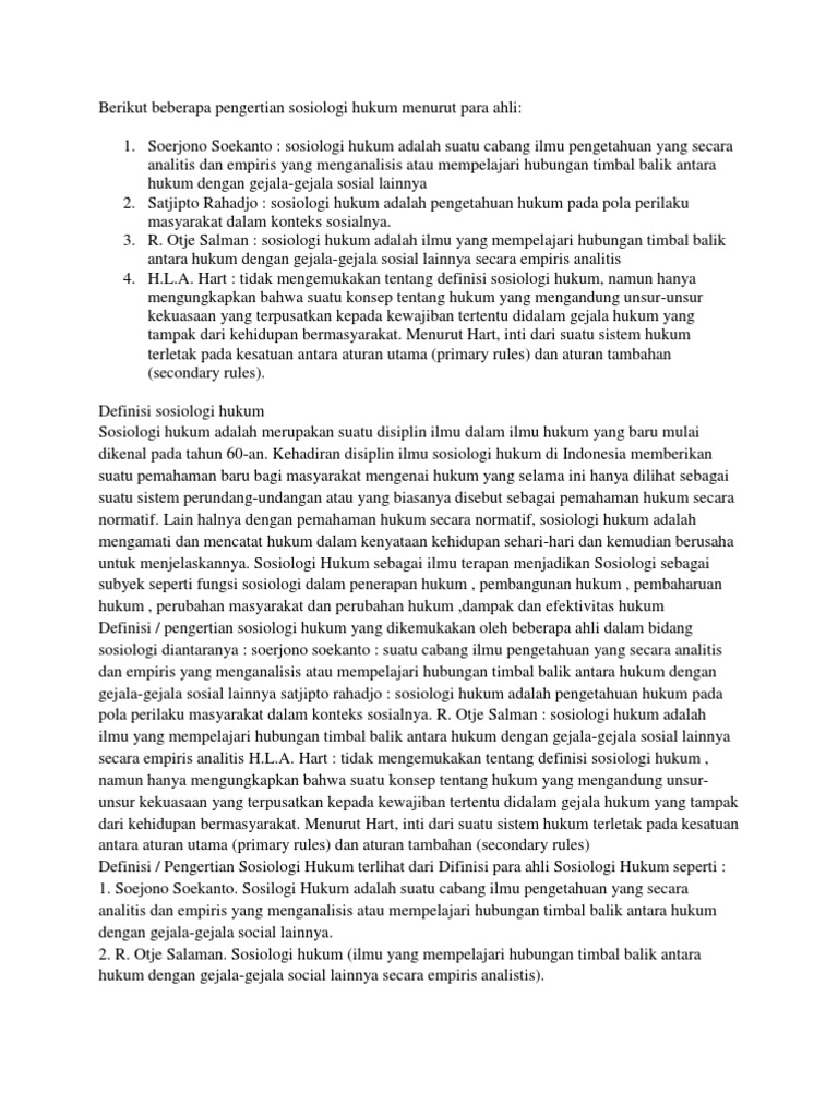 Berikut Beberapa Pengertian Sosiologi Hukum Menurut Para Ahli