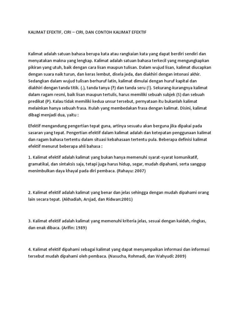 DOC) Kalimat Efektif (Pengertian, Ciri-ciri, Contoh | Ulfah Lathifah - Academia.edu