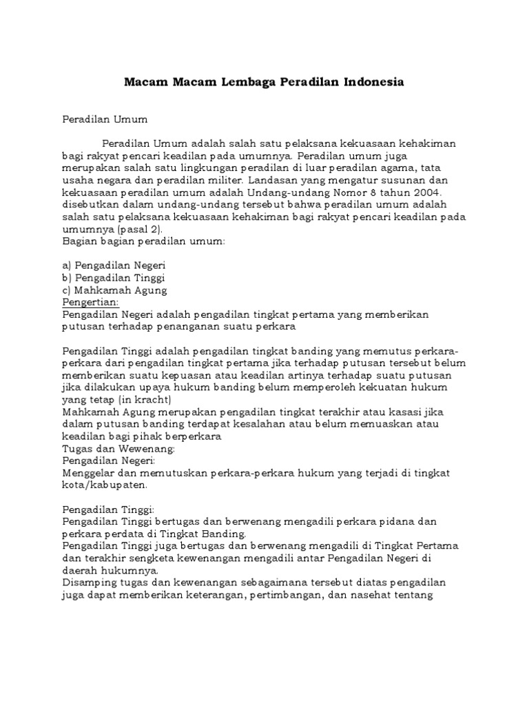 Macam Macam Lembaga Peradilan Indonesia