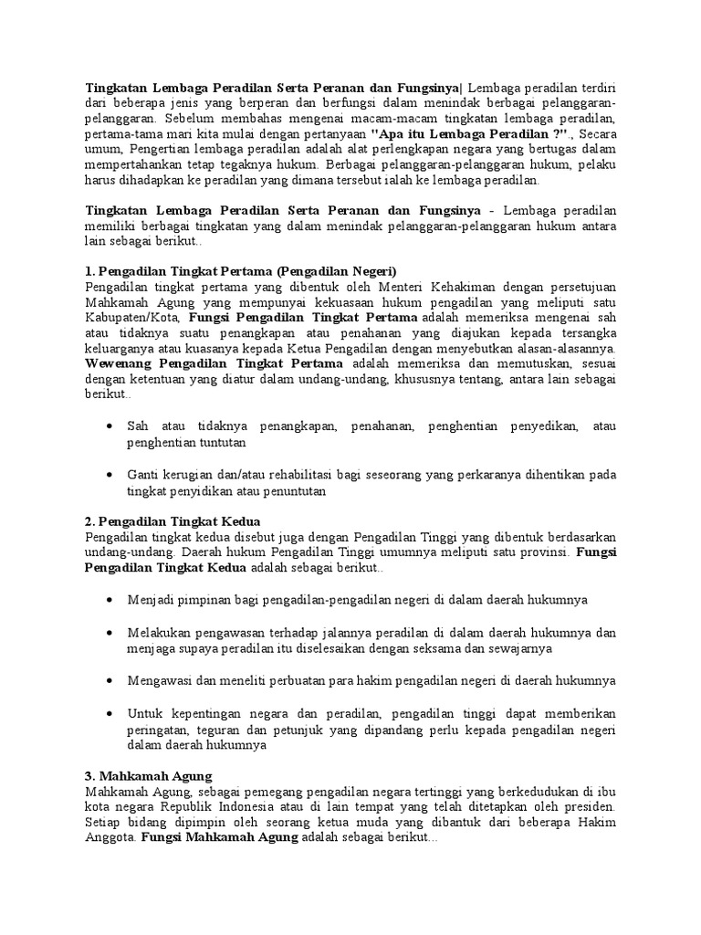 Tingkatan Lembaga Peradilan Serta Peranan Dan Fungsinya